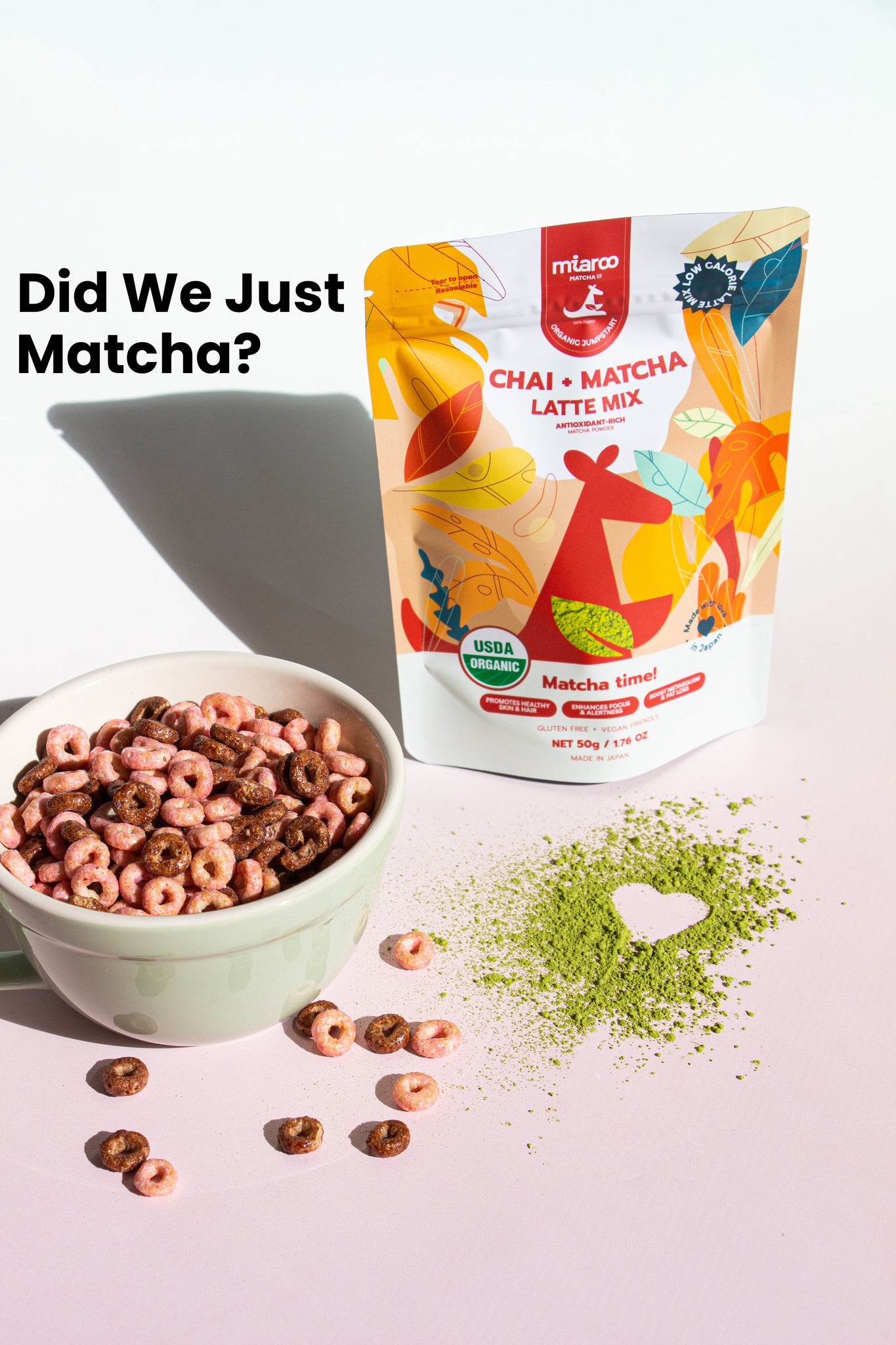 As usual, the good stuff happens in the background. Support wellness and balance with Miaroo Matcha, packed with essential amino acids and organic ingredients.