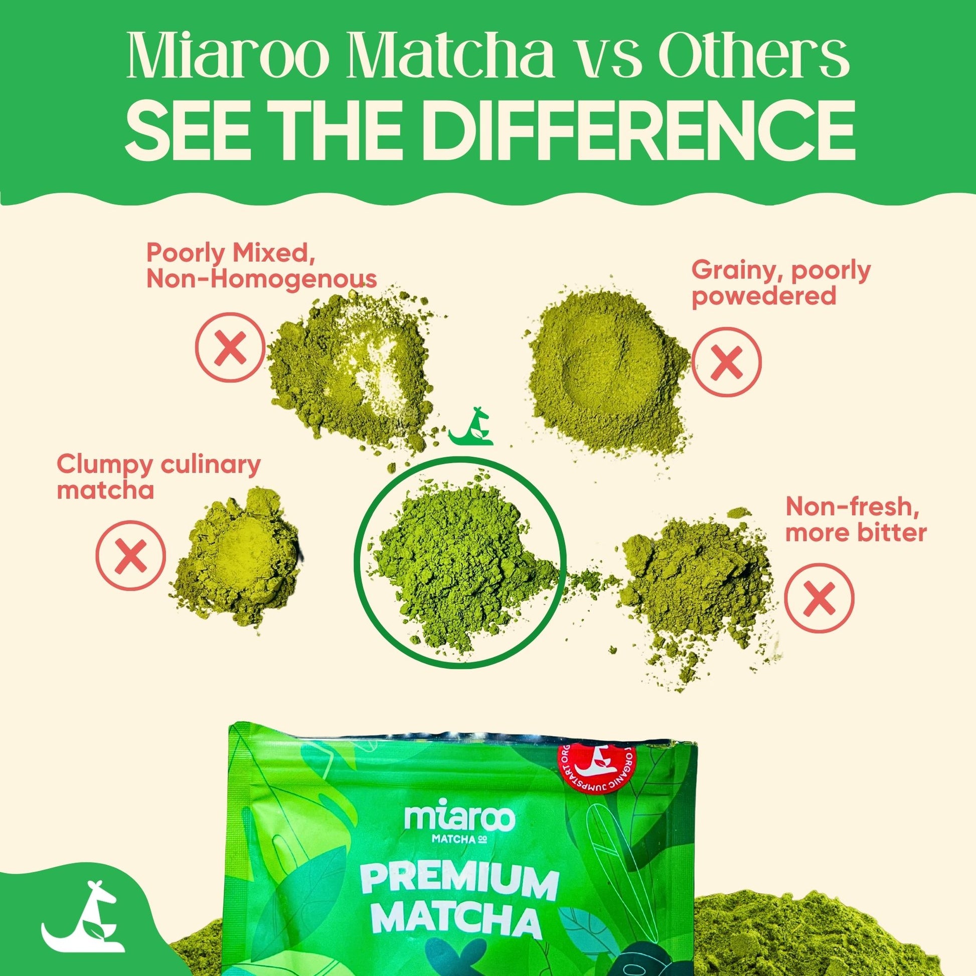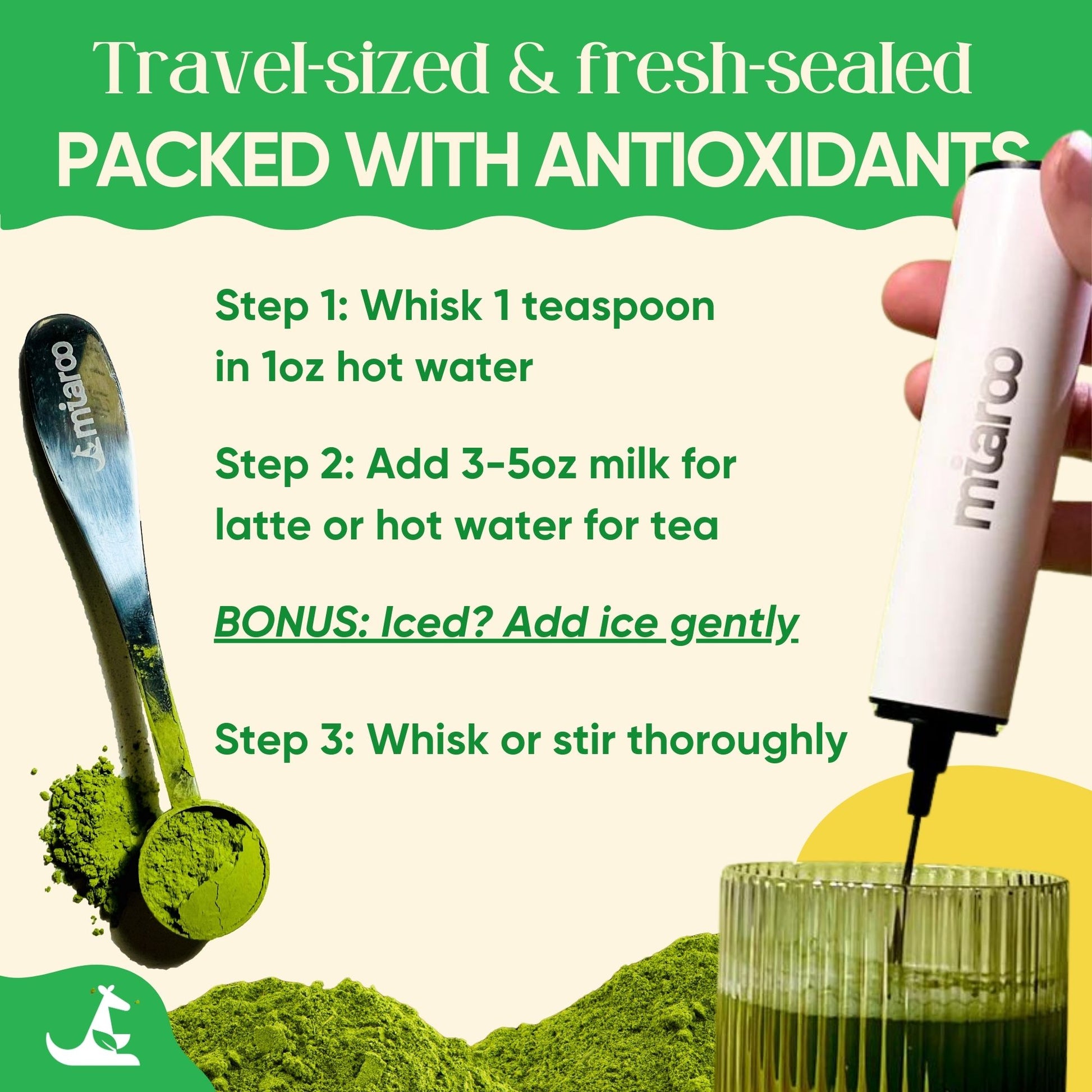 As usual, the good stuff happens in the background. Support wellness and balance with Miaroo Matcha, packed with essential amino acids and organic ingredients.